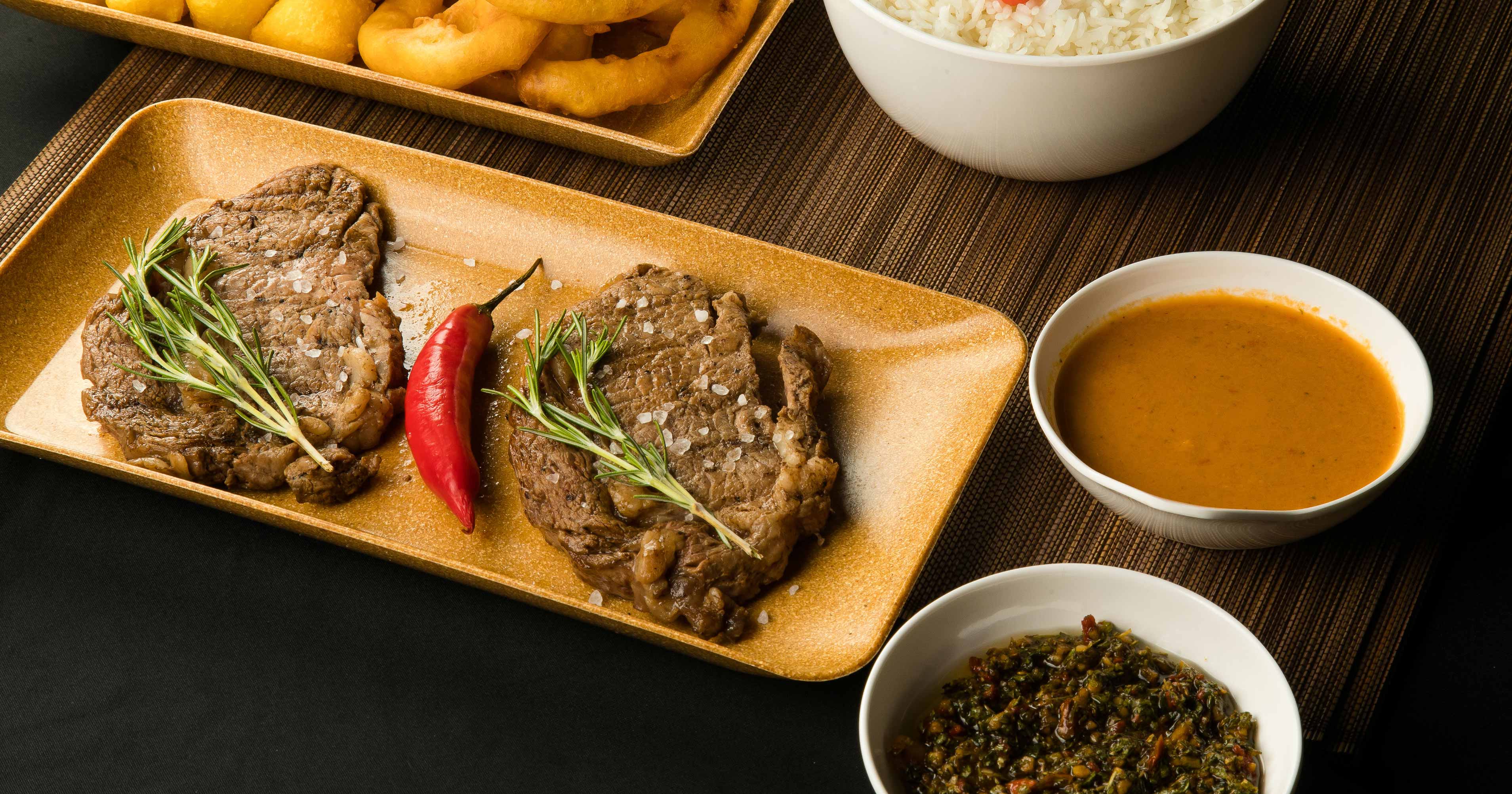 Aproximadamente 500 gramas in natura (pesada antes de assar) do suculento ancho Angus argentino (corte que apresenta um marmoreio evidente entre as fibras deixando a carne mais suculenta, macia e saborosa), um clássico argentino assado na exclusiva parrilla da El Cardal apenas com Sal de Parrilla.