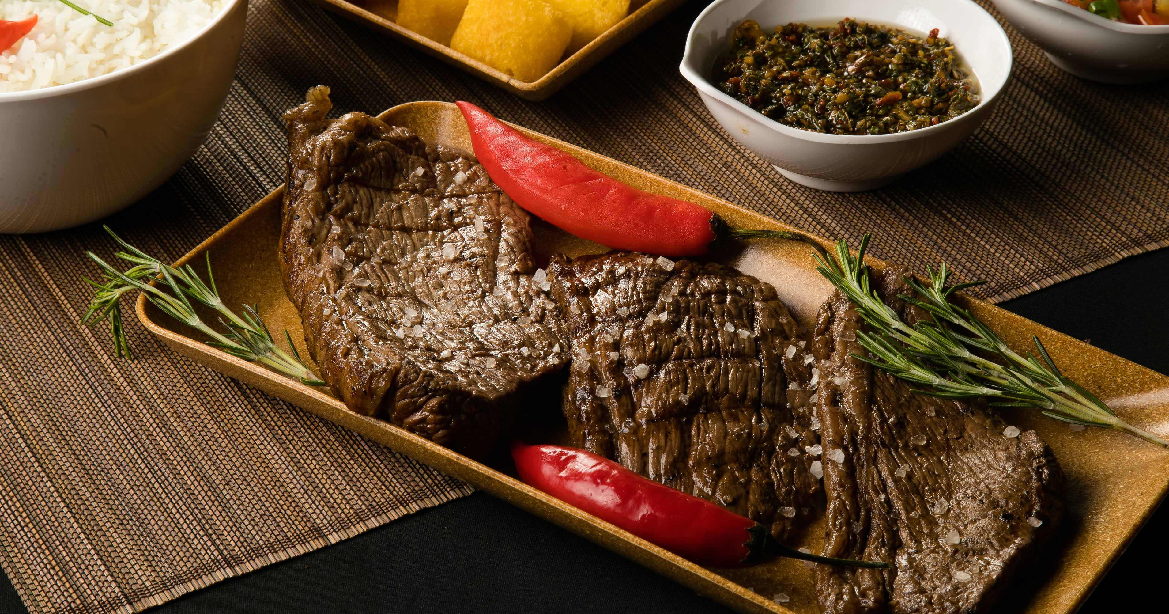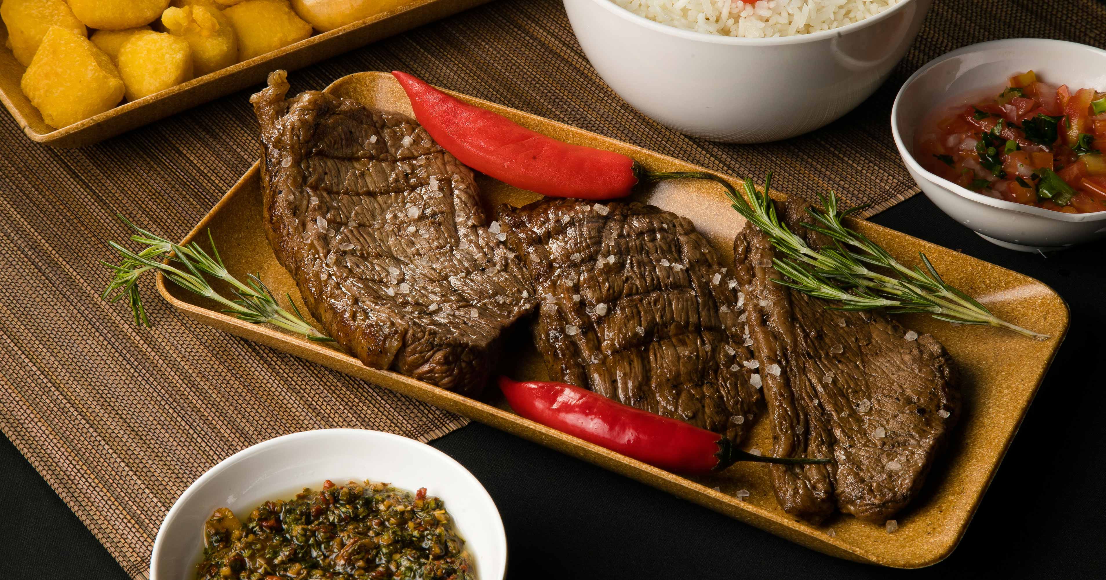 Aproximadamente 500 gramas in natura (pesada antes de assar) de uma suculenta Picanha (tapa de cuadril argentina) assada na exclusiva parrilla da El Cardal apenas com Sal de Parrilla.